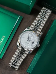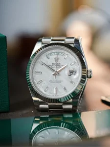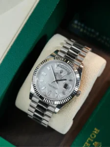 Rolex Day-Date 40mm 18K White Gold Fluted Bezel President Bracelet Automatic Watch